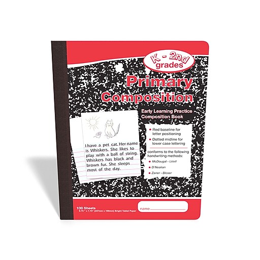Staples Composition Notebook 7 5 X 9 75 Primary Ruled 100 Sheets Red Marble 42079 Staples